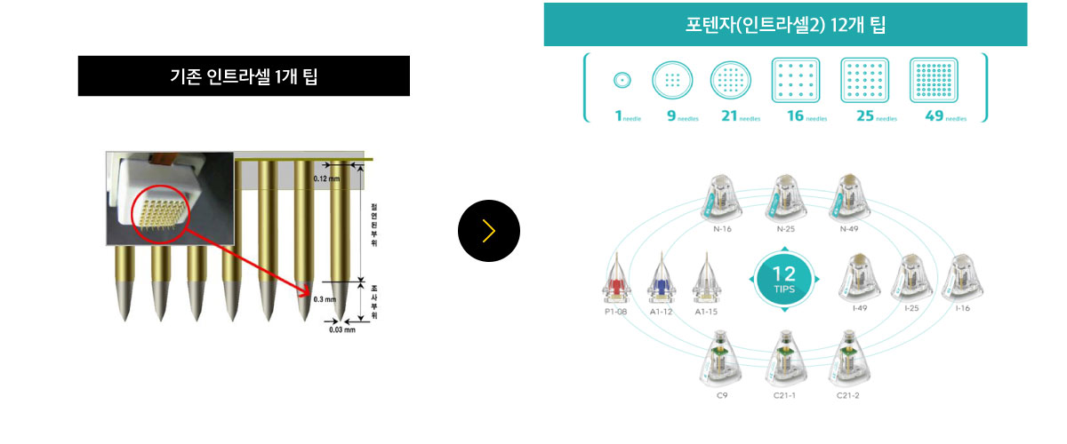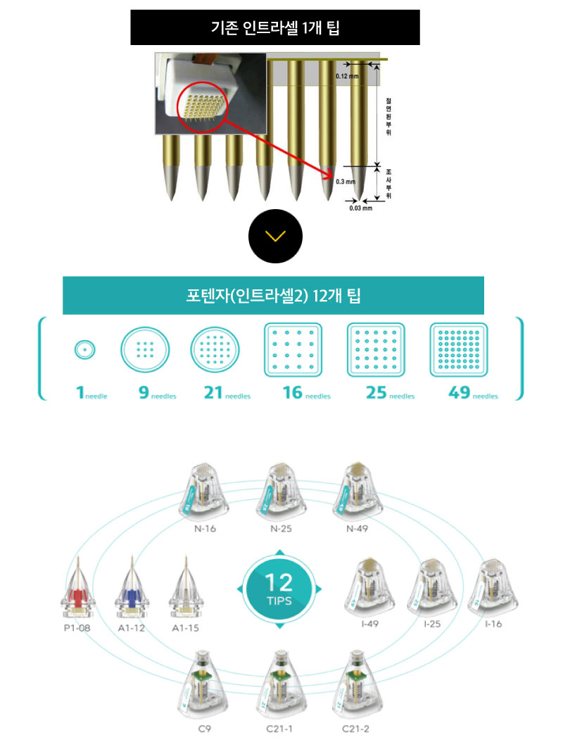 피부 문제에 따라 니들팁의 깊이 및 강도, 고주파 종류 셋팅
